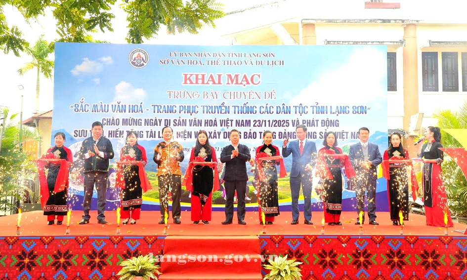 Khai mạc trưng bày chuyên đề “Sắc màu văn hóa - Trang phục truyền thống các dân tộc tỉnh Lạng Sơn” là hoạt động nằm trong chuỗi các sự kiện kỷ niệm 20 năm ngày Di sản văn hóa Việt Nam (23/11/2005 - 23/11/2025). Theo đó, tại Bảo tàng tỉnh sẽ trưng bày giới thiệu trên 300 ảnh tư liệu, tài liệu, hiện vật về trang phục truyền thống và một số họa tiết hoa văn trên trang phục của các dân tộc trong tỉnh. Nội dung trưng bày gồm 4 phần: phần 1: trang phục truyền thống dân tộc Nùng, giới thiệu trang phục các nhóm Nùng cùng một số hoạ tiết hoa văn trên trang phục (Nùng Inh, Nùng Cháo, Nùng Phàn Slình); phần 2: trang phục truyền thống dân tộc Tày, Sán Chay (nhóm Cao Lan, Sán Chỉ), cùng một số hoạ tiết hoa văn trên trang phục; phần 3: trang phục truyền thống dân tộc Hoa, Mông, Dao và một số hoạ tiết hoa văn trên trang phục; phần 4: trang phục thầy cúng các dân tộc Tày, Nùng, Dao, Sán Chỉ và một số hoạ tiết hoa văn trên trang phục. Bên cạnh đó, còn có sự góp mặt của một số nghệ nhân dân gian, nghệ nhân ưu tú tham gia giới thiệu, trình diễn quy trình chế tác các sản phẩm thủ công truyền thống như thêu thùa, dệt vải, trình diễn trang phục truyền thống…