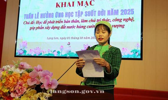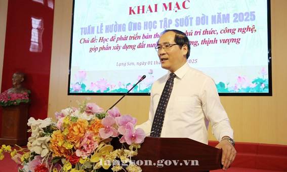 Sáng 01/10/2025, tại trường Trung học phổ thông (THPT) Hoàng Văn Thụ, UBND tỉnh Lạng Sơn tổ chức khai mạc Tuần lễ hưởng ứng học tập suốt đời năm 2025 với chủ đề: Học để phát triển bản thân, làm chủ tri thức, công nghệ, góp phần xây dựng đất nước hùng cường, thịnh vượng. Buổi khai mạc được tổ chức trực tiếp tại Trường THPT Hoàng Văn Thụ và kết nối trực tuyến đến 64 điểm cầu xã trên địa bàn tỉnh.