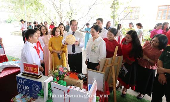 Các đại biểu thăm quan các gian hàng trưng bày các sản phẩm do các em học sinh các trường chế tạo