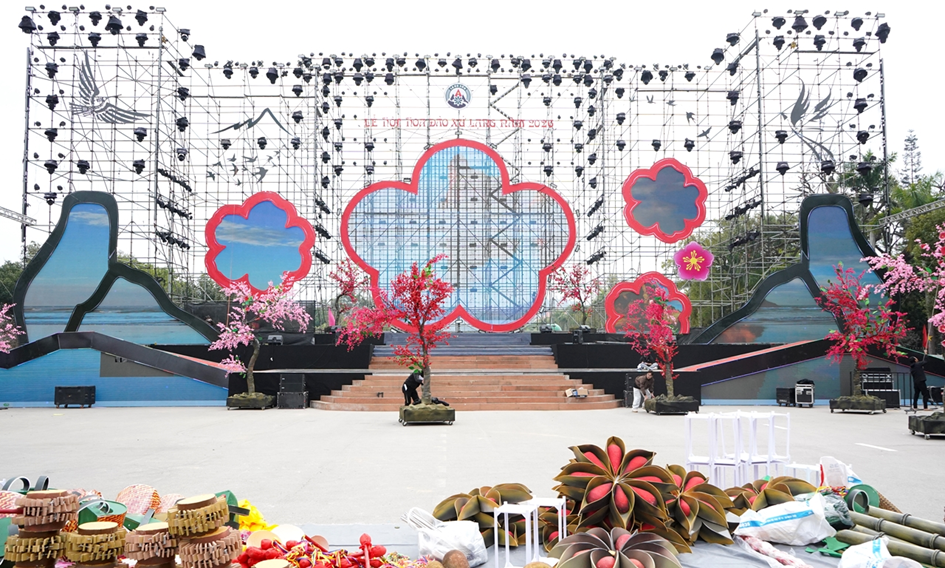 Sân khấu tổ chức Lễ khai mạc cơ bản đã hoàn thiện xong