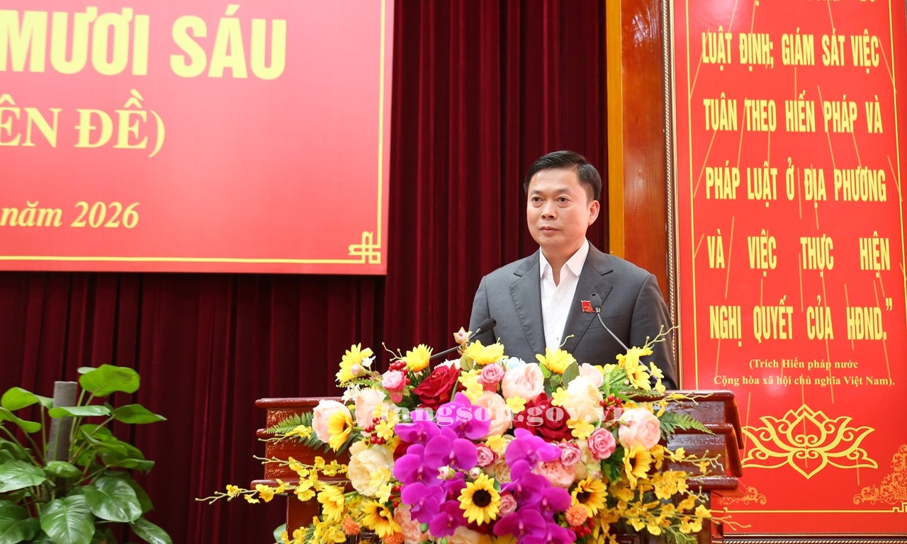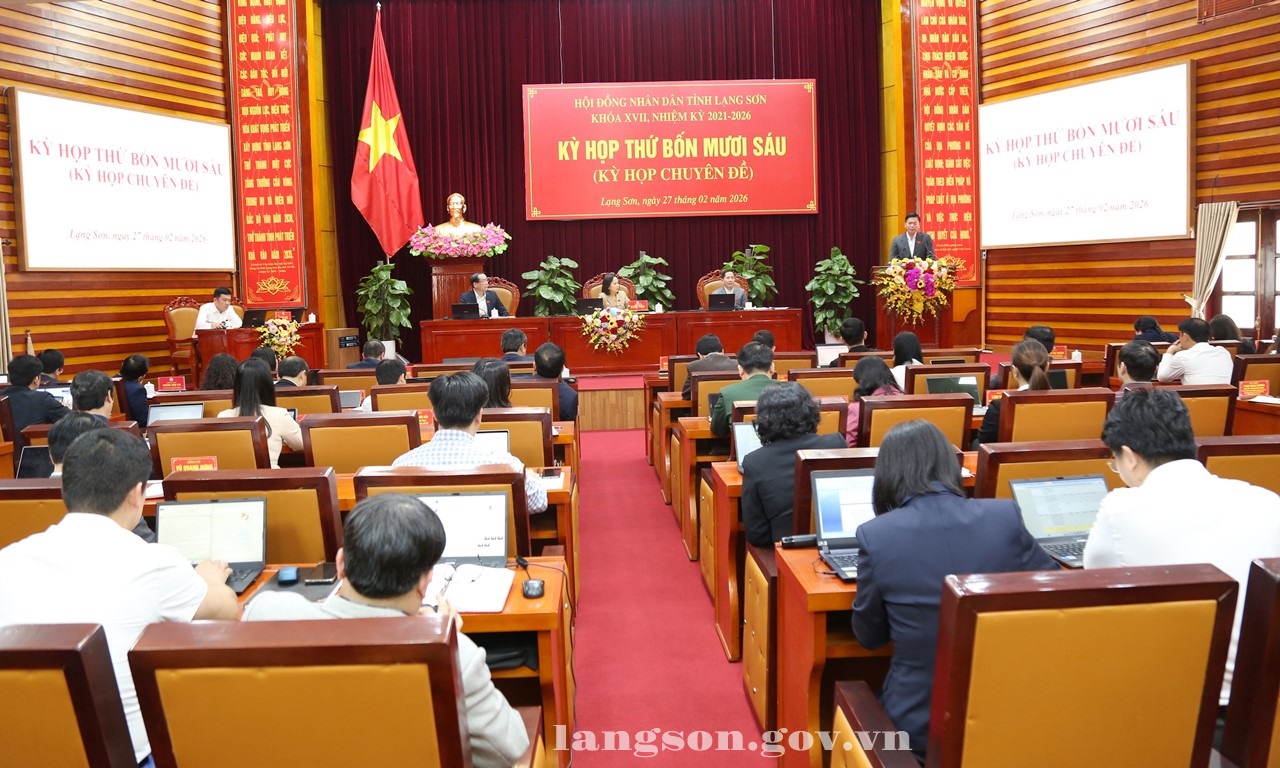 Chiều 27/02/2026, HĐND tỉnh khóa XVII, nhiệm kỳ 2021 - 2026 tổ chức kỳ họp thứ bốn mươi sáu (kỳ họp chuyên đề) để xem xét, thông qua một số nội dung quan trọng thuộc thẩm quyền. Đồng chí Đoàn Thị Hậu, Phó Bí thư Thường trực Tỉnh ủy, Chủ tịch HĐND tỉnh; đồng chí Dương Xuân Huyên, Ủy viên Ban Thường vụ Tỉnh ủy, Phó Chủ tịch Thường trực HĐND tỉnh; đồng chí Nguyễn Văn Trường, Phó Chủ tịch HĐND tỉnh đồng chủ tọa kỳ họp.