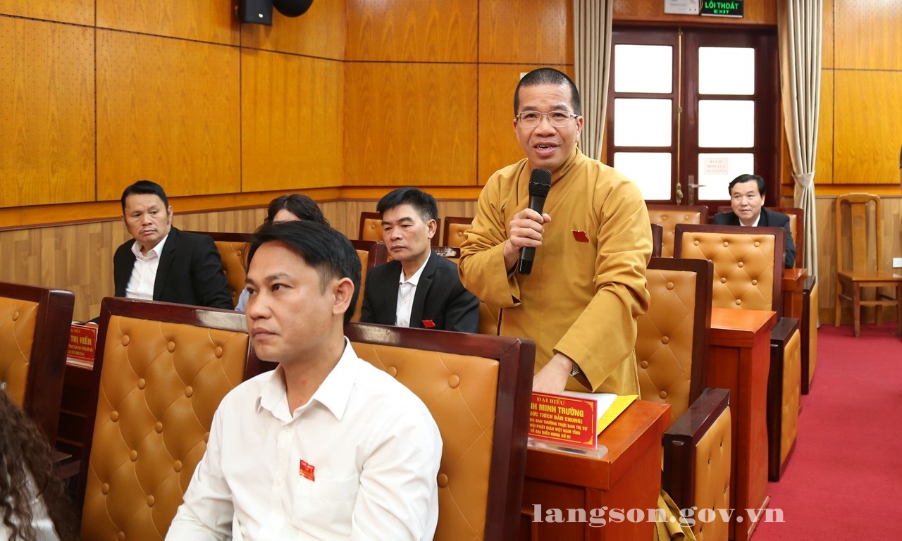 Đại biểu Thích Bản Chung đóng góp ý kiến các nội dung dự thảo nghị quyết