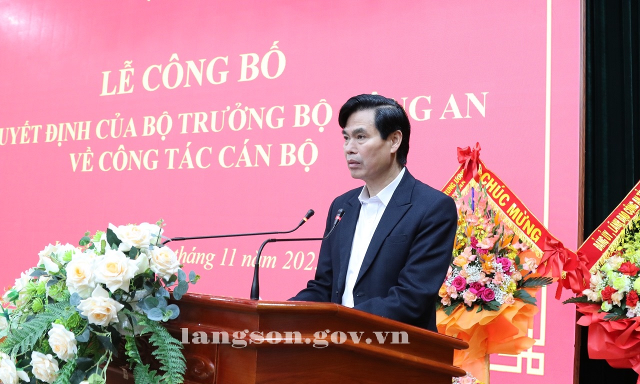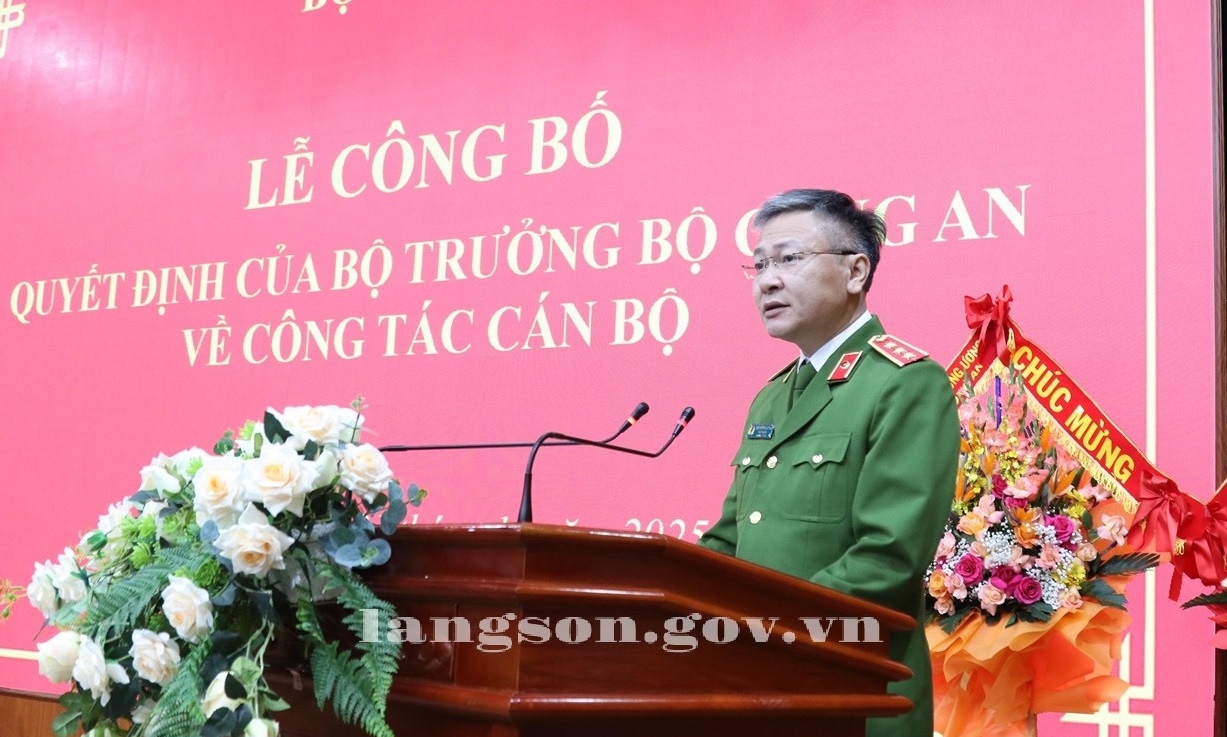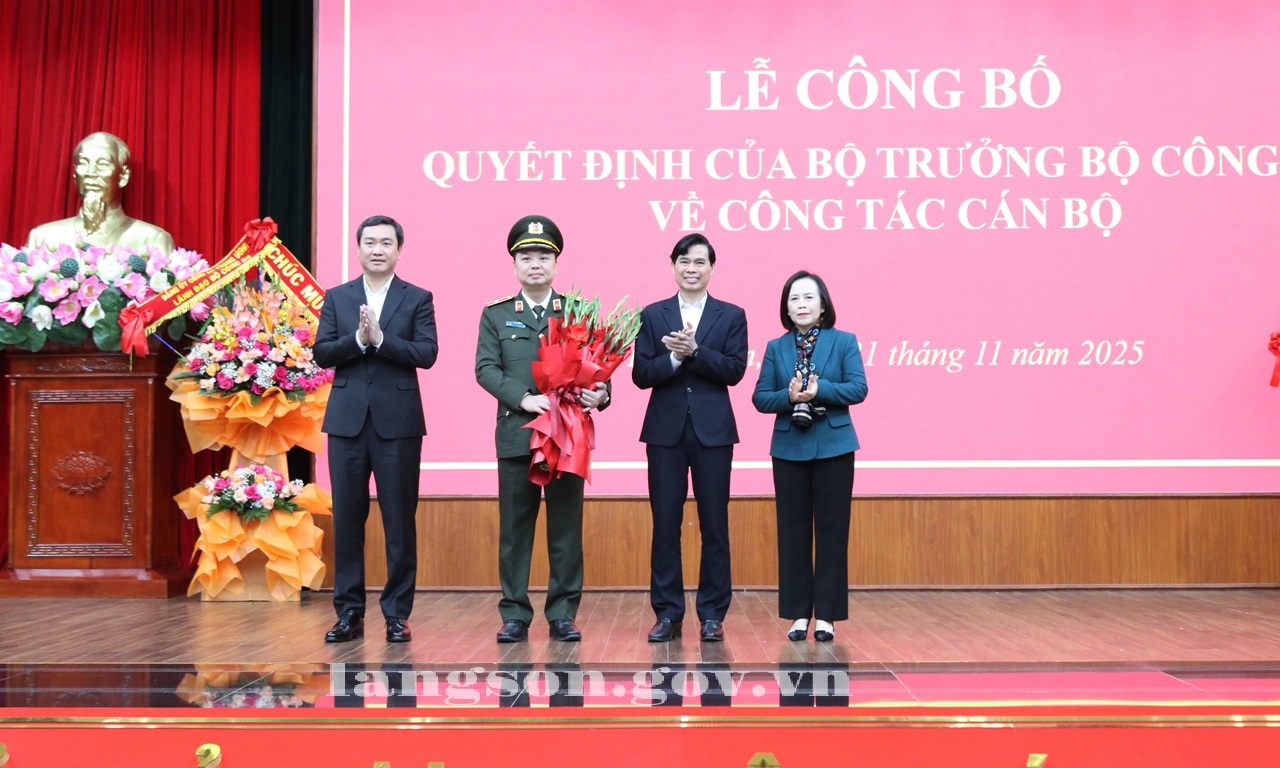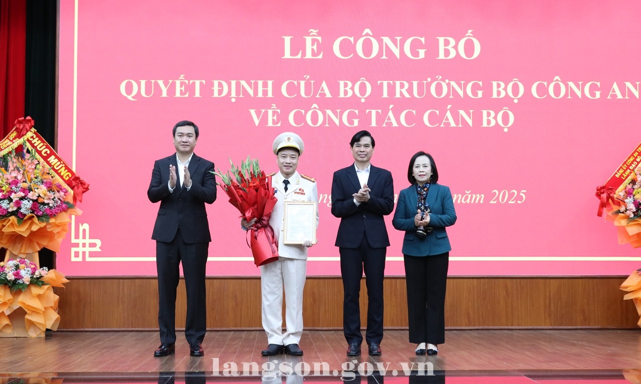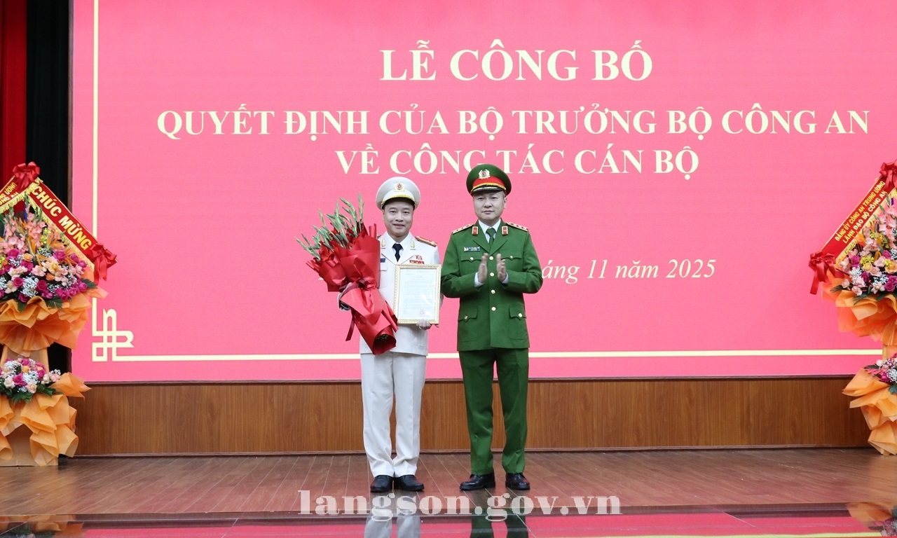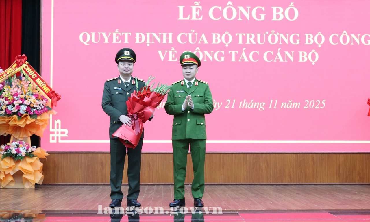 Sáng 21/11/2025, tại trụ sở Công an tỉnh Lạng Sơn đã diễn ra Lễ công bố Quyết định của Bộ trưởng Bộ Công an về công tác cán bộ. Dự buổi lễ có Thượng tướng Nguyễn Ngọc Lâm, Thứ trưởng Bộ Công an, đại diện các đơn vị thuộc Bộ Công an. Về phía tỉnh có đồng chí Hoàng Quốc Khánh, Bí thư Tỉnh ủy; đồng chí Đoàn Thị Hậu, Phó Bí thư Thường trực Tỉnh uỷ, Chủ tịch HĐND tỉnh; đồng chí Nguyễn Cảnh Toàn, Phó Bí thư Tỉnh uỷ, Chủ tịch UBND tỉnh; lãnh đạo các ban xây dựng đảng, các sở, ngành, cơ quan khối nội chính của tỉnh.