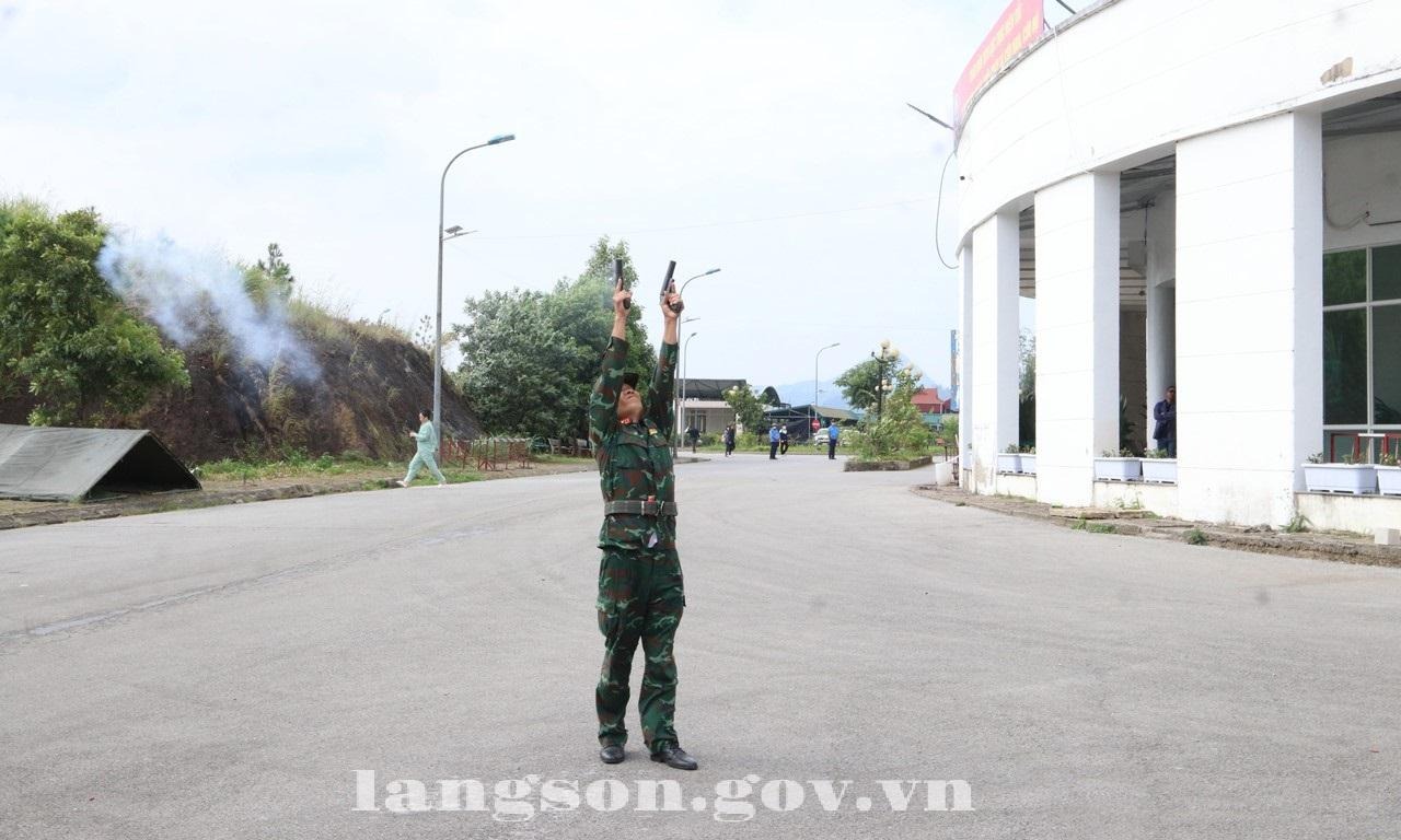 Đại diện Bộ Chỉ huy Quân sự tỉnh bắn súng lệnh bắt đầu thực tập