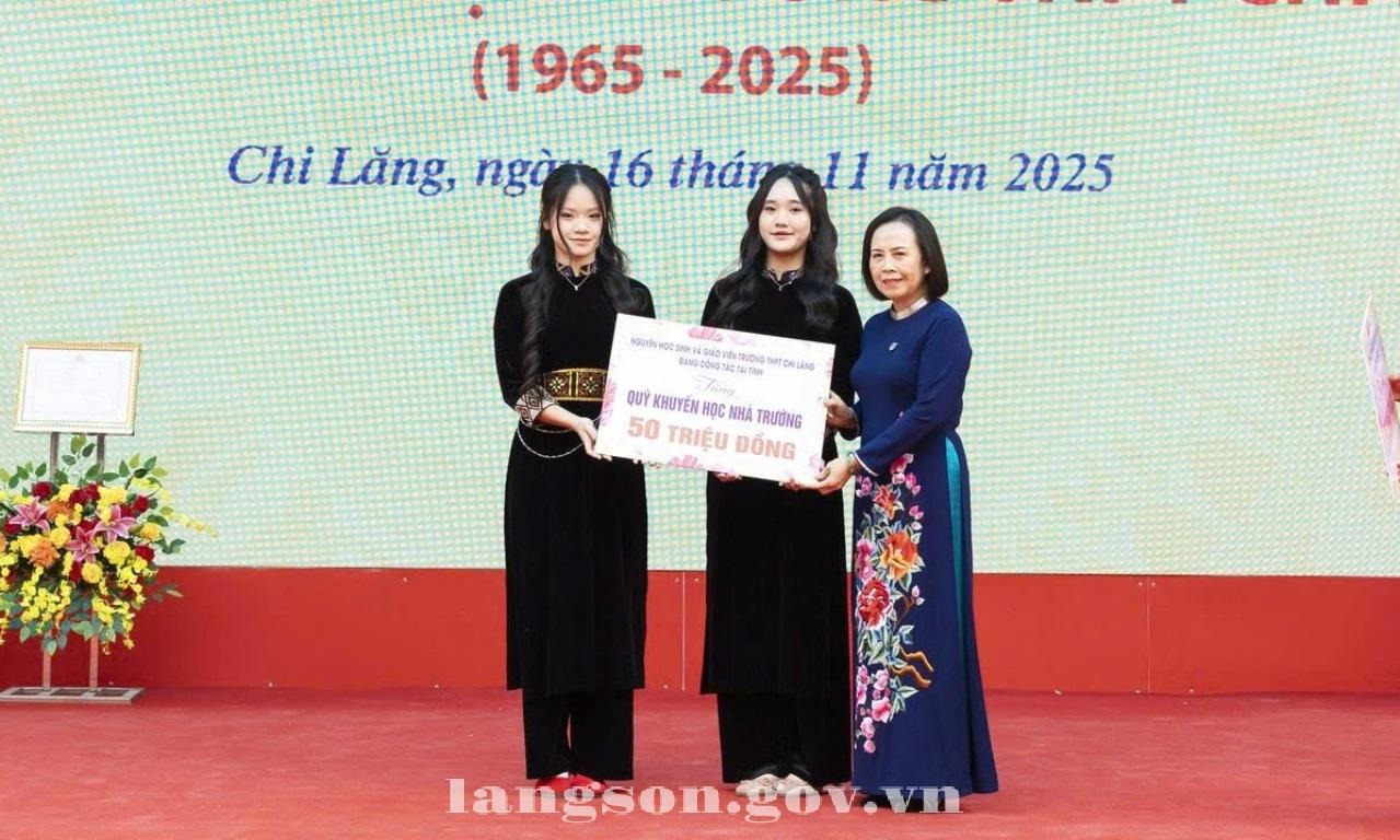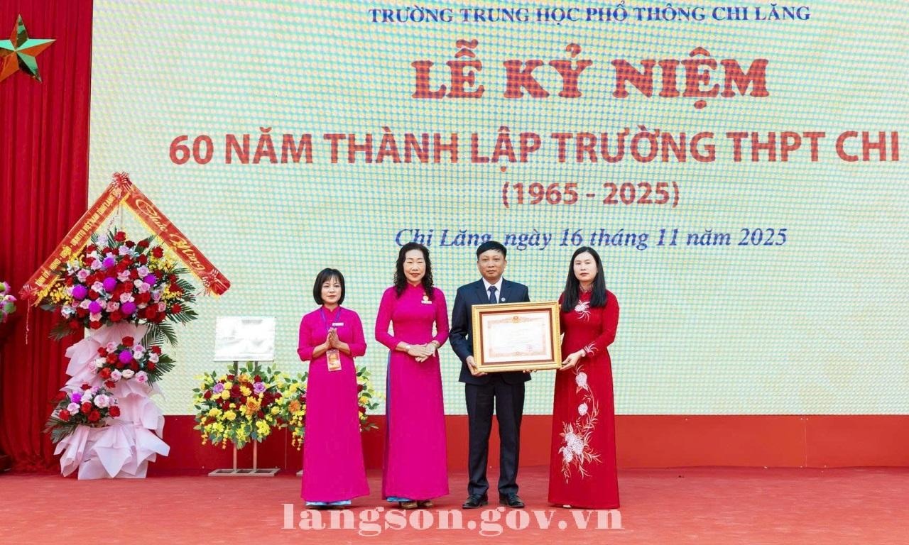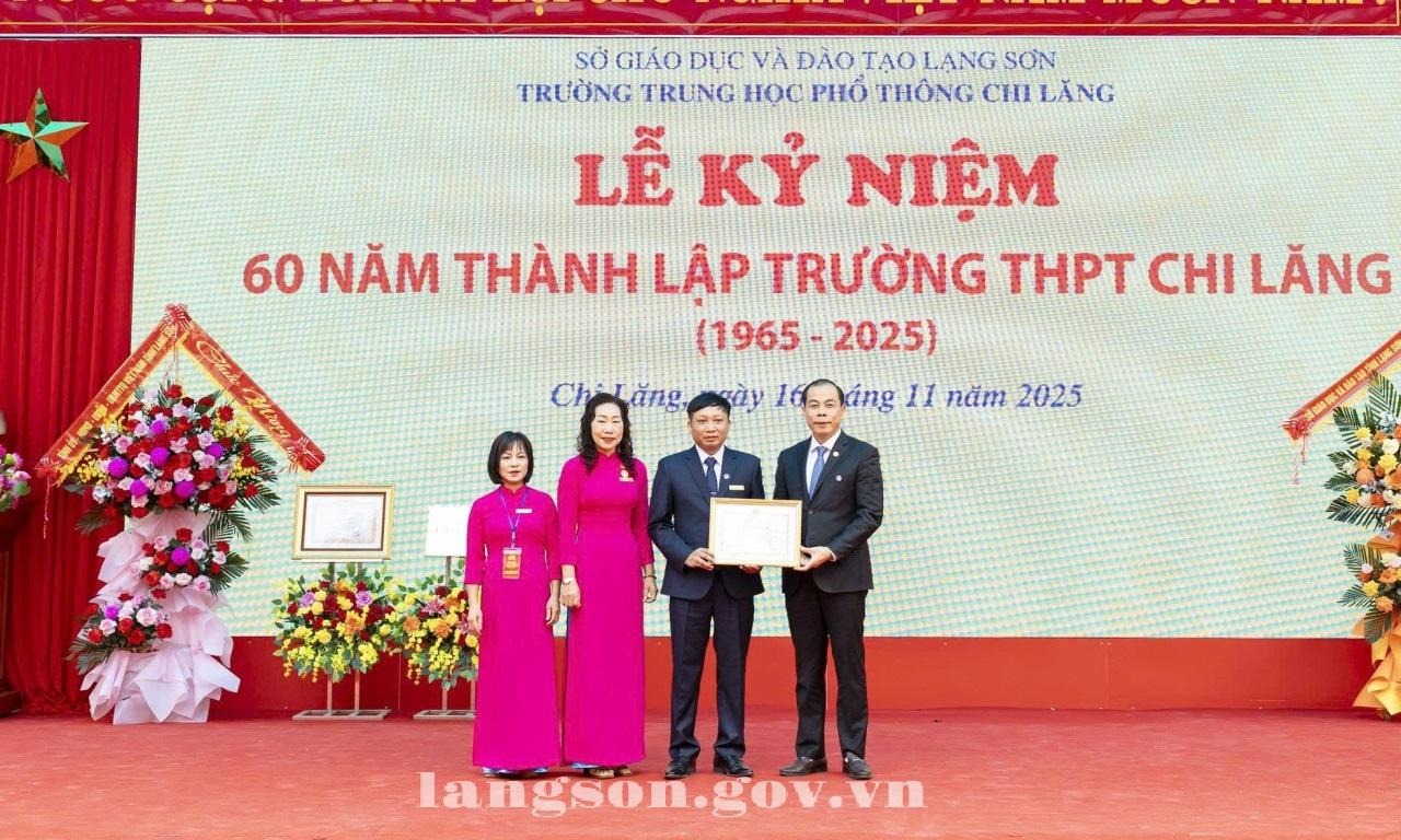 Ngày 16/11/2025, Trường Trung học phổ thông (THPT) Chi Lăng long trọng tổ chức lễ kỷ niệm 60 năm thành lập trường (1965 - 2025). Đến dự có đồng chí Đoàn Thị Hậu, Phó Bí thư Thường trực Tỉnh ủy, Chủ tịch HĐND tỉnh; đồng chí Trần Thanh Nhàn, Phó Chủ tịch UBND tỉnh; lãnh đạo các sở, ban, ngành, xã Chi Lăng và đông đảo các cựu học sinh, cùng toàn thể giáo viên, nhân viên, học sinh nhà trường.