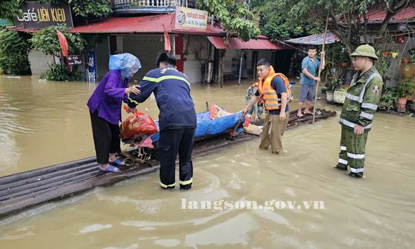 Tại xã Thất Khê, các lực lượng khẩn trương di dời người dân vùng bị ngập đến nơi an toàn