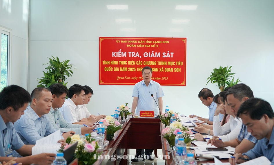Ngày 10/10/2025, đồng chí Đoàn Thanh Sơn, Phó Chủ tịch UBND tỉnh, Phó Trưởng ban Thường trực Ban Chỉ đạo các Chương trình mục tiêu quốc gia tỉnh Lạng Sơn giai đoạn 2021-2025 đã đi kiểm tra, giám sát tình hình thực hiện các Chương trình mục tiêu quốc gia năm 2025 trên địa bàn xã Quan Sơn.