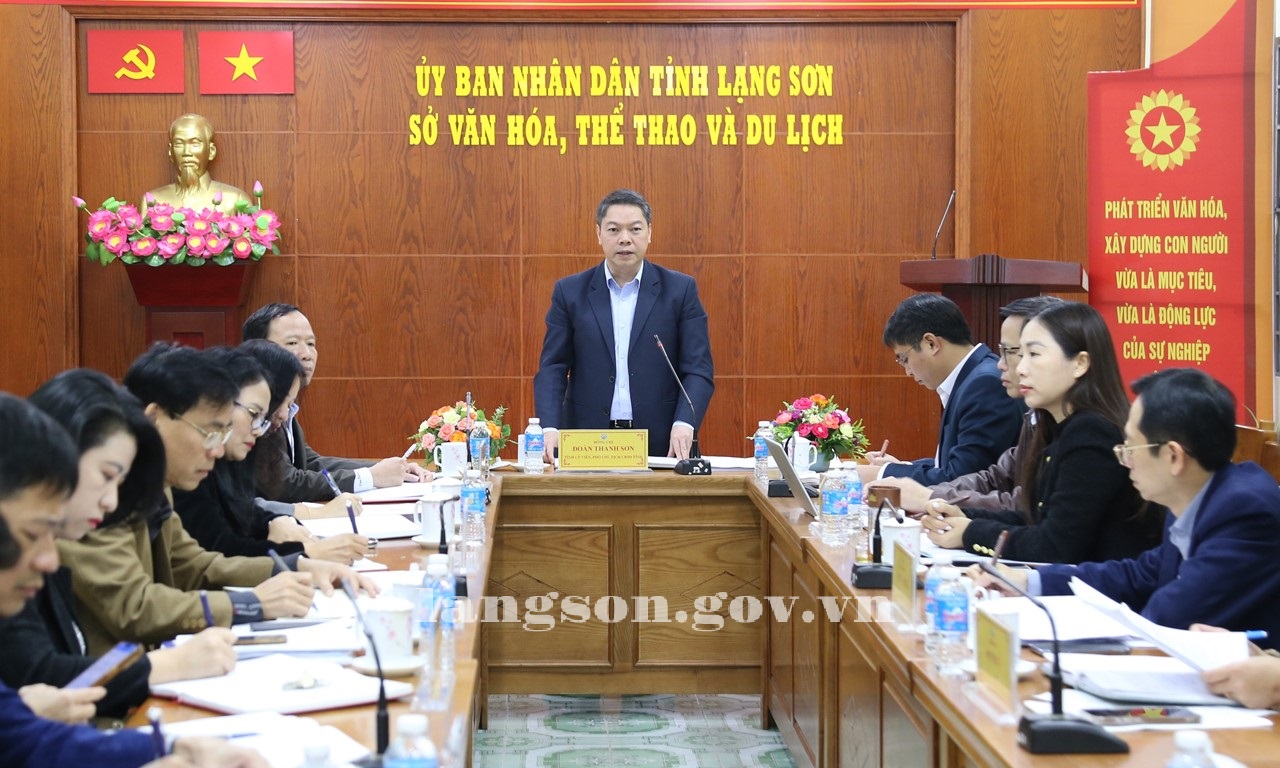 Ngày 05/12/2025, đồng chí Đoàn Thanh Sơn, Phó Chủ tịch UBND tỉnh chủ trì buổi làm việc với Sở Văn hóa, Thể thao và Du lịch (VHTT&DL), Trung tâm Xúc tiến Đầu tư, Thương mại và Du lịch (XTĐTTM&DL) tỉnh về tình hình triển khai, thực hiện nhiệm vụ năm 2025 phương hướng, nhiệm vụ trong thời gian tới về lĩnh vực văn hoá, thể thao và du lịch; hoạt động xúc tiến du lịch và Công viên địa chất toàn cầu (CVĐCTC) UNESCO Lạng Sơn. Cùng dự buổi làm việc có lãnh đạo một số sở, ngành, Văn phòng UBND tỉnh.