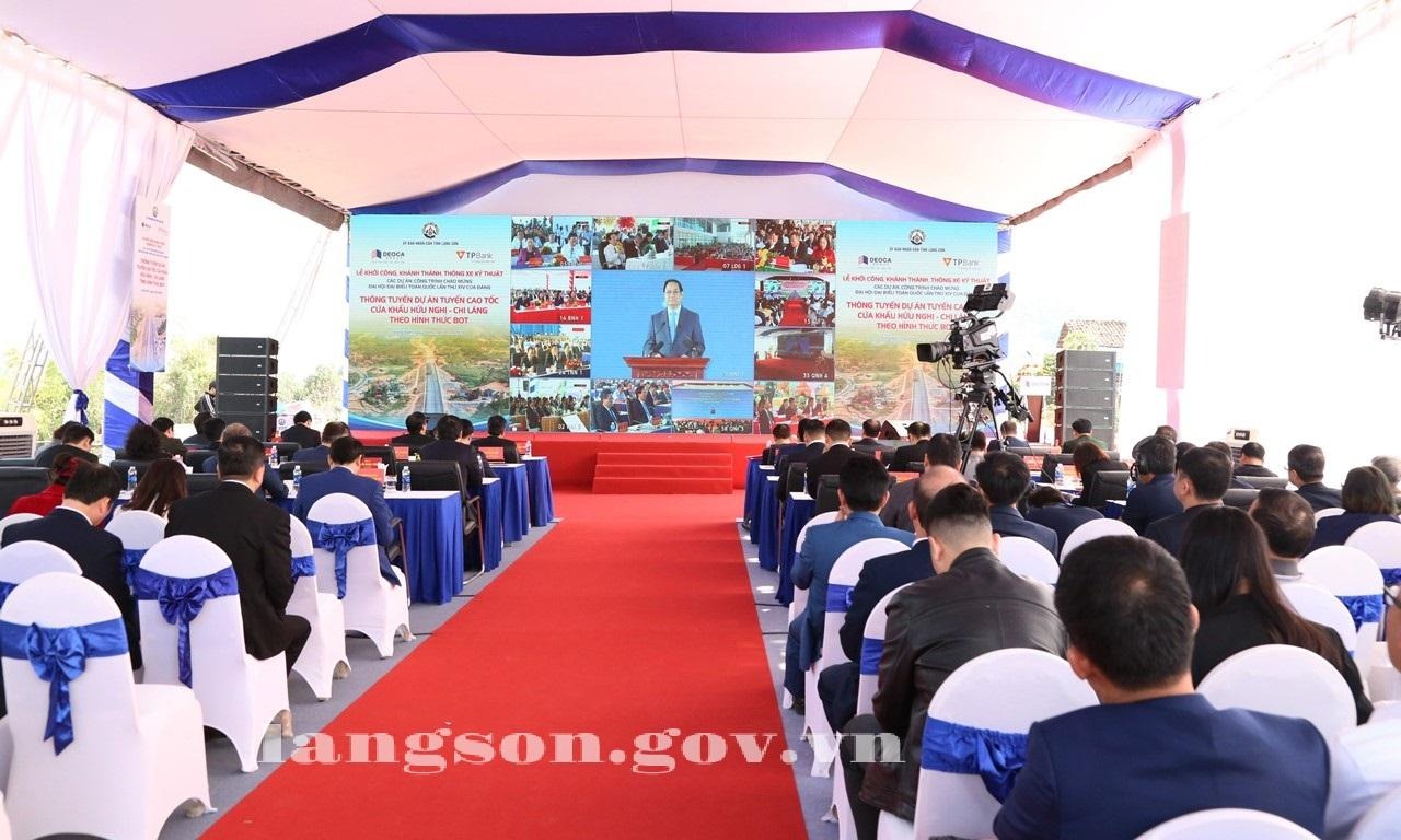 Tham dự tại điểm cầu lễ thông tuyến dự án tuyến cao tốc cửa khẩu Hữu Nghị - Chi Lăng có đồng chí Lê Hoài Trung, Bí thư Trung ương Đảng, Bộ trưởng Bộ Ngoại giao; đại diện Bộ Xây dựng. Về phía tỉnh có các đồng chí: Nguyễn Cảnh Toàn, Phó Bí thư Tỉnh ủy, Chủ tịch UBND tỉnh; Đoàn Thu Hà, Phó Bí thư Tỉnh ủy, Chủ tịch Ủy ban MTTQ Việt Nam tỉnh; Hồ Tiến Thiệu, nguyên Phó Bí thư Tỉnh ủy, nguyên Chủ tịch UBND tỉnh; các đồng chí Ủy viên Ban Thường vụ Tỉnh ủy; lãnh đạo HĐND, UBND tỉnh; lãnh đạo các sở, ban, ngành, một số xã, phường; chủ đầu tư dự án, các doanh nghiệp.