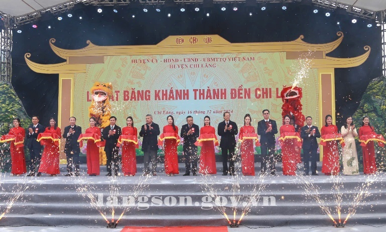 Tại buổi lễ, các đại biểu đã dâng hương và thực hiện nghi thức cắt băng khánh thành công trình Đền Chi Lăng
