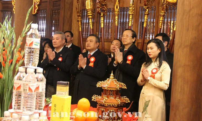 Các đại biểu dâng hương tại Đền Chi Lăng