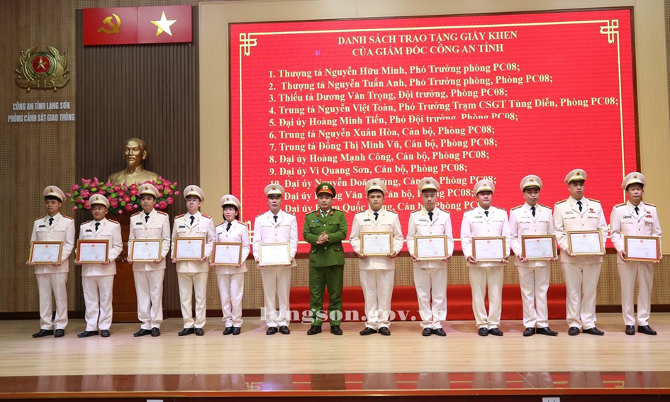 Tại buổi Lễ kỷ niệm, 02 tập thể và 02 cá nhân đã được nhận Bằng khen của Chủ tịch Uỷ ban nhân dân tỉnh vì đã có thành tích đột xuất trong công tác đấu tranh, phòng chống tội phạm, góp phần bảo đảm an ninh trật tự trên địa bàn tỉnh. Nhân dịp này, nhiều tập thể, cá nhân có thành tích xuất sắc được nhận Giấy khen của Cục trưởng Cục Cảnh sát giao thông, Bộ Công an và Giấy khen của Giám đốc Công an tỉnh Lạng Sơn./.