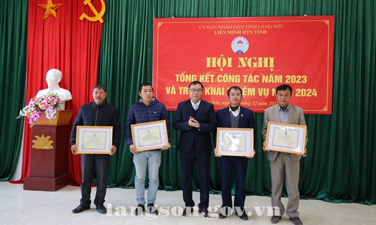 Nhân dịp này, 02 tập thể, 02 cá nhân được nhận Giấy khen của Ban Chấp hành Liên minh HTX tỉnh vì có thành tích trong xây dựng và phát triển HTX năm 2023.