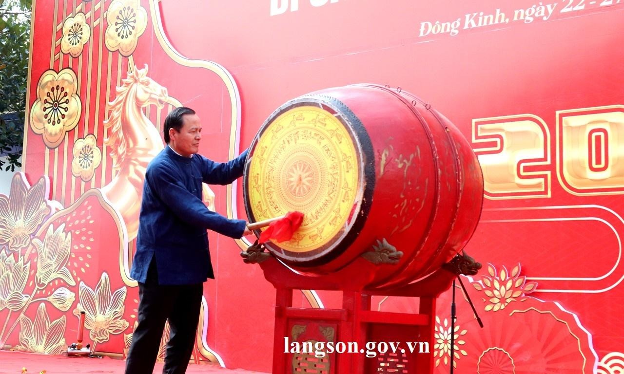 Lãnh đạo Đảng ủy phường Đông Kinh đánh trống khai hội đề Kỳ Cùng