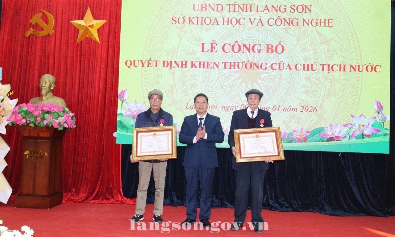 Nhân dịp này, 02 đồng chí nguyên lãnh đạo Sở KH&CN được tặng Huân chương Lao động hạng Nhì, hạng Ba của Chủ tịch nước; 01 tập thể, 03 cá nhân được tặng Bằng khen của Chủ tịch UBND tỉnh vì đã có thành tích xuất sắc, tiêu biểu trong công tác hỗ trợ hệ sinh thái khởi nghiệp đổi mới sáng tạo tỉnh Lạng Sơn giai đoạn 2021 – 2025. Đồng thời, Giám đốc Sở KH&CN cũng tặng Giấy khen cho nhiều cá nhân vì có thành tích trong phong trào thi đua thực hiện nhiệm vụ năm 2025.