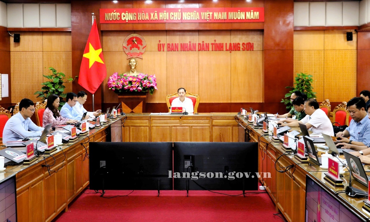 Đại biểu tham dự hội nghị tại điểm cầu trụ sở UBND tỉnh Lạng Sơn