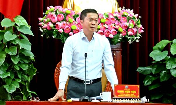 Đồng chí Đinh Hữu Học, Ủy viên Ban Thường vụ Tỉnh ủy, Phó Chủ tịch Thường trực HĐND tỉnh phát biểu tại cuộc họp
