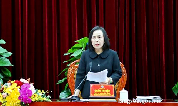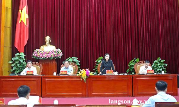 Đồng chí Đoàn Thị Hậu, Phó Bí thư Thường trực Tỉnh ủy, Chủ tịch HĐND tỉnh phát biểu kết luận cuộc họp
