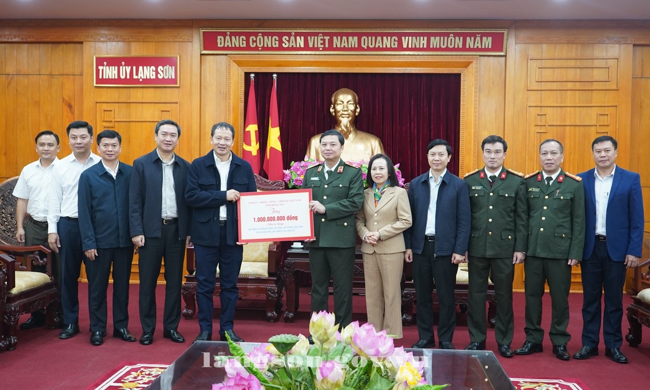Đồng chí Bí thư Tỉnh ủy Đồng Nai trao hỗ trợ cho đại diện Công an tỉnh Lạng Sơn