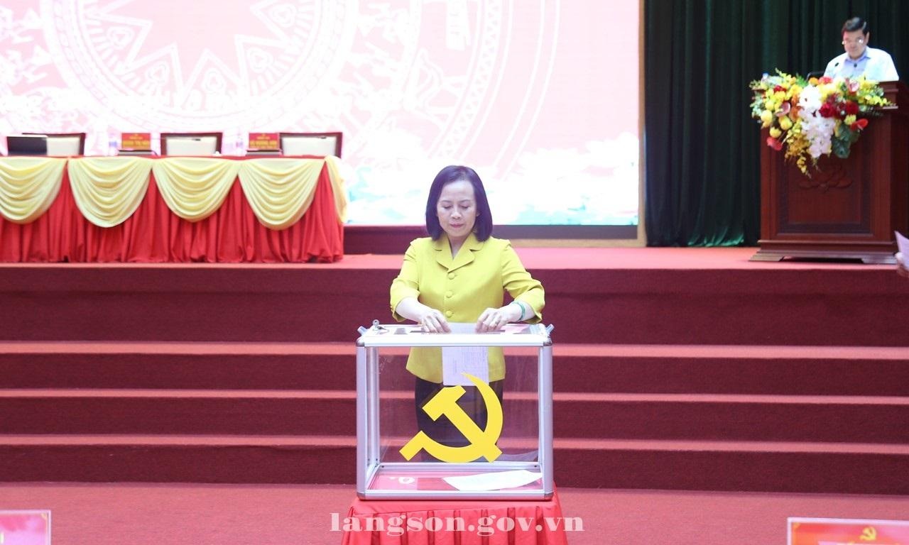 Đồng chí Đoàn Thị Hậu, Phó Bí thư Thường trực Tỉnh ủy bỏ phiếu giới thiệu nhân sự các chức danh