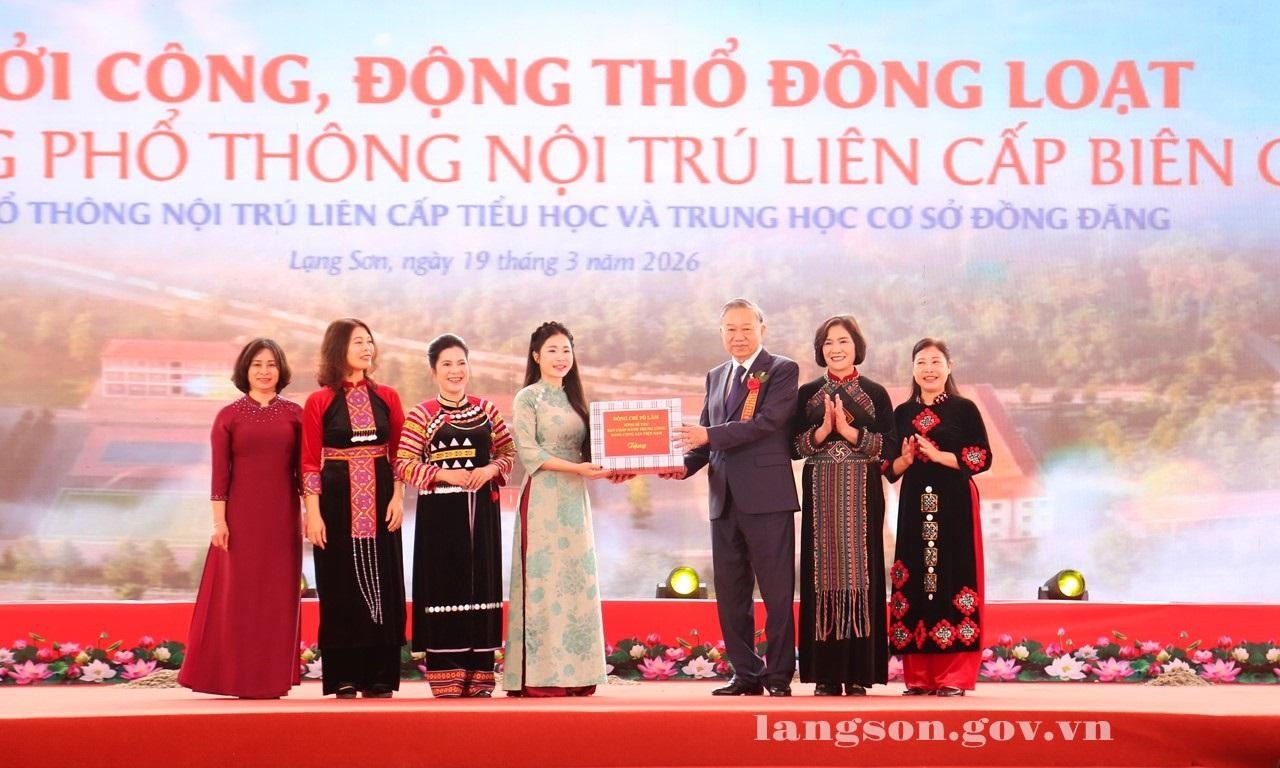 Sáng 19/3/2026, Tổng Bí thư Tô Lâm đã dự Lễ khởi công Trường Phổ thông nội trú liên cấp Tiểu học và Trung học cơ sở Đồng Đăng, xã Đồng Đăng, tỉnh Lạng Sơn.