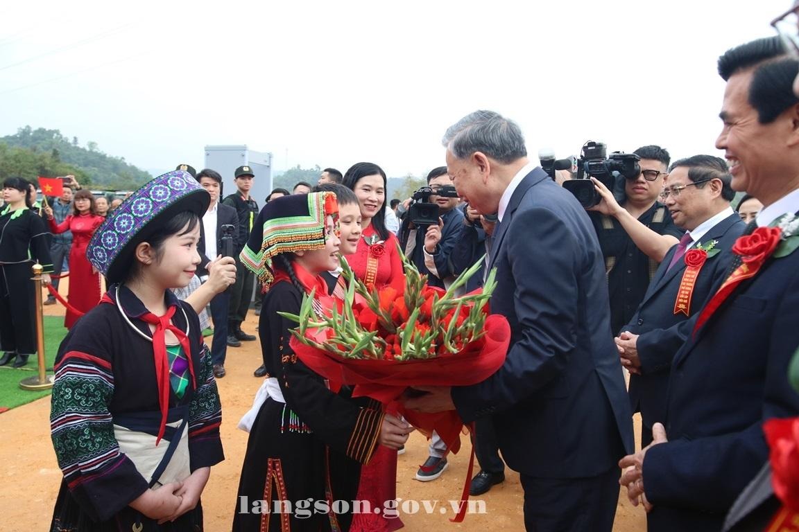 Tại buổi lễ, Tổng Bí thư Tô Lâm cùng Thủ tướng Chính phủ Phạm Minh Chính và Lãnh đạo các ban, bộ, ngành Trung ương và Lãnh đạo tỉnh Lạng Sơn đã thực hiện nghi thức khởi công, động thổ xây dựng Trường phổ thông nội trú liên cấp Tiểu học và Trung học cơ sở Đồng Đăng; đồng thời, tặng quà cho các trường học trên địa bàn xã Đồng Đăng.