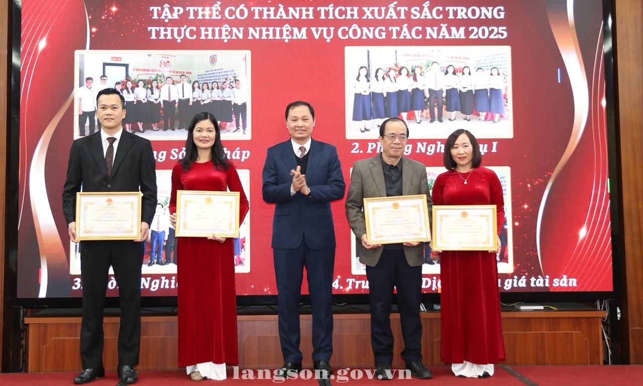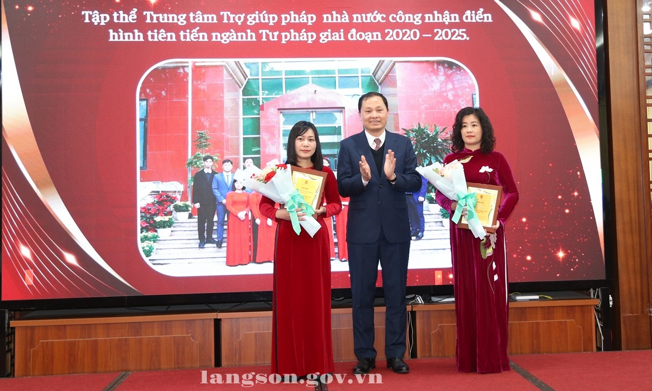 Nhân dịp này, Sở Tư pháp được nhận Bằng khen của Bộ trưởng Bộ Tư pháp vì có thành tích xuất sắc trong công tác xây dựng và thi hành pháp luật giai đoạn 2024 - 2025; 01 tập thể, 01 cá nhân được Bộ trưởng Bộ Tư pháp công nhận điển hình tiên tiến ngành Tư pháp giai đoạn 2020 - 2025.
