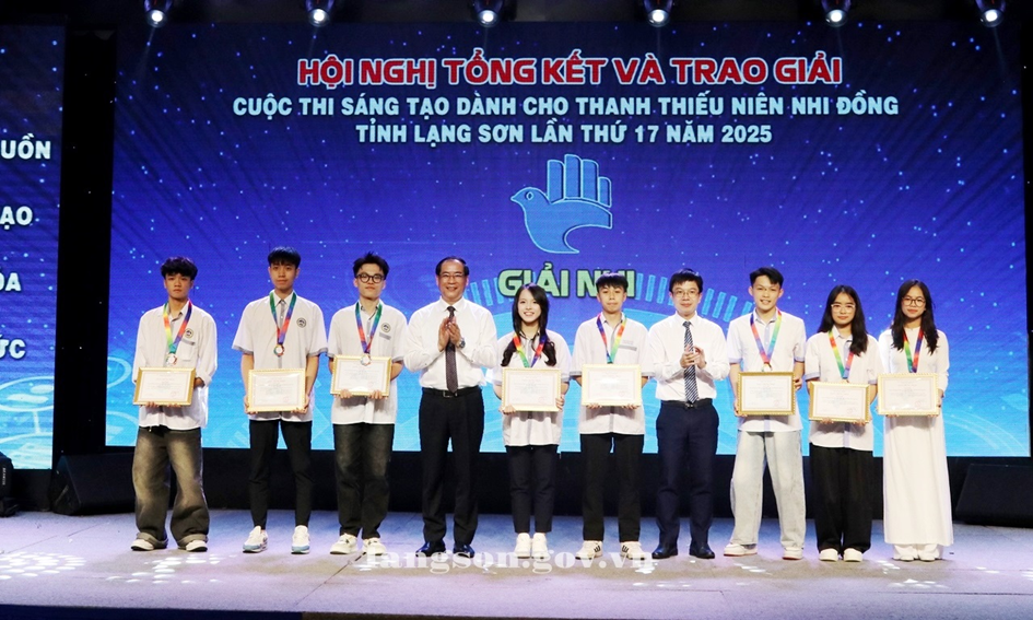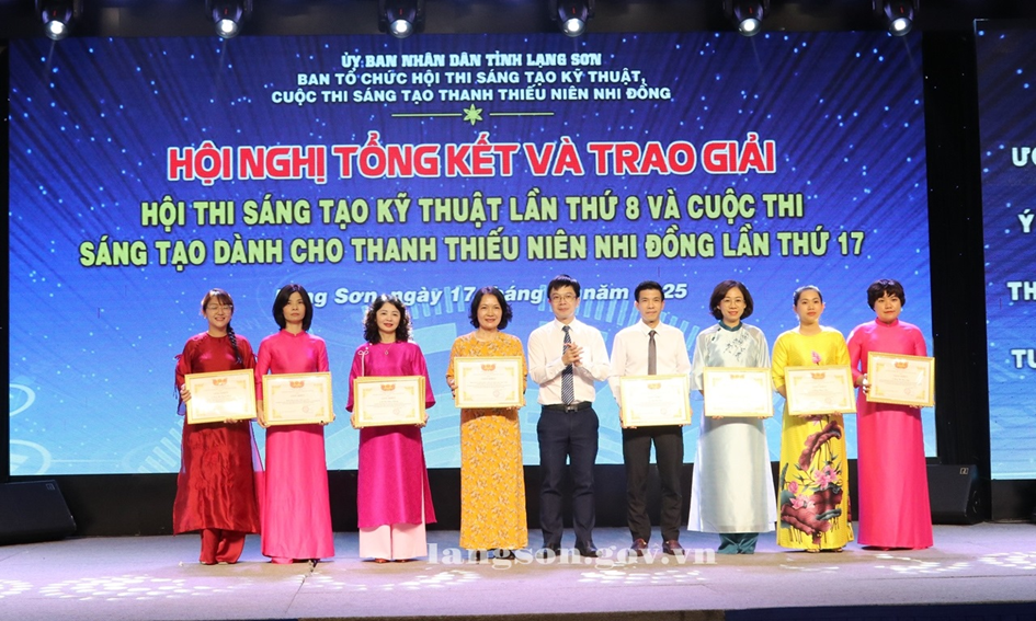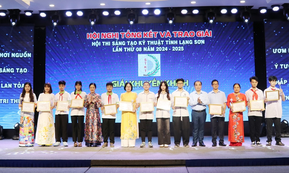 Trong chương trình, Ban Tổ chức đã trao giải cho các tác giả, nhóm tác giả đạt giải tại Hội thi sáng tạo kỹ thuật tỉnh lần thứ 8 năm 2024 - 2025 và Cuộc thi Sáng tạo dành cho Thanh thiếu niên, nhi đồng tỉnh Lạng Sơn lần thứ 17 năm 2025. Nhân dịp này, Sở Khoa học và Công nghệ trao Giấy khen cho các tập thể, cá nhân vì có thành tích trong công tác tuyên truyền, vận động, tổ chức các Cuộc thi Sáng tạo năm 2025./.