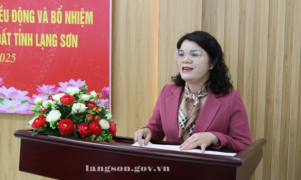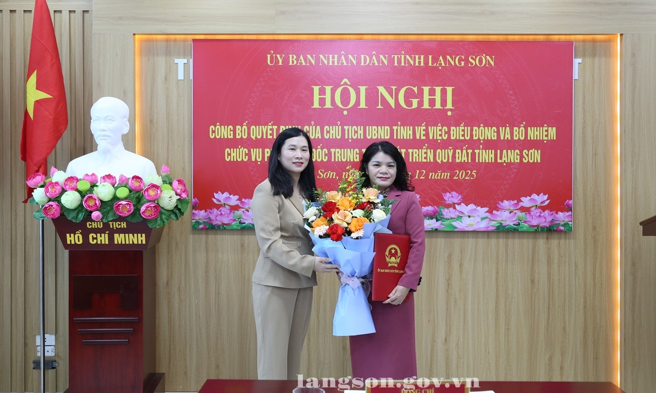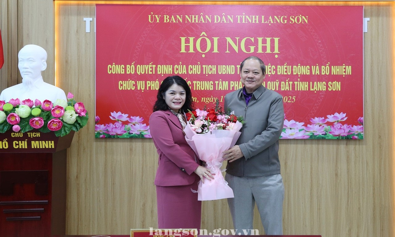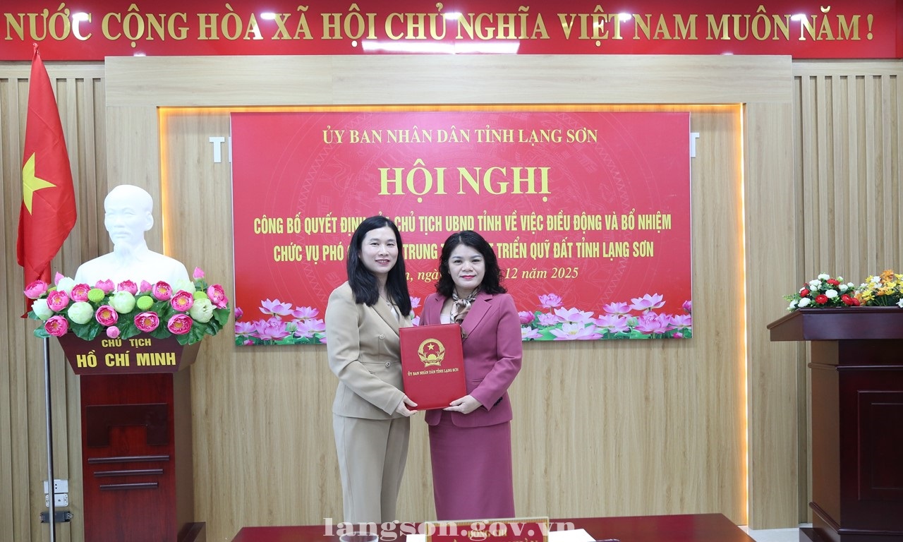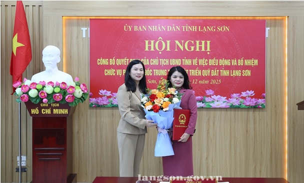 Tại hội nghị, lãnh đạo Sở Nội vụ đã công bố Quyết định số 2715/QĐ-UBND ngày 17/12/2025 của Chủ tịch UBND tỉnh điều động và bổ nhiệm đồng chí Linh Thị Hiền, Phó Bí thư Đảng uỷ, Chủ tịch UBND phường Đông Kinh giữ chức vụ Phó Giám đốc Trung tâm PTQĐ tỉnh Lạng Sơn, kể từ ngày 18/12/2025, thời hạn bổ nhiệm là 05 năm.