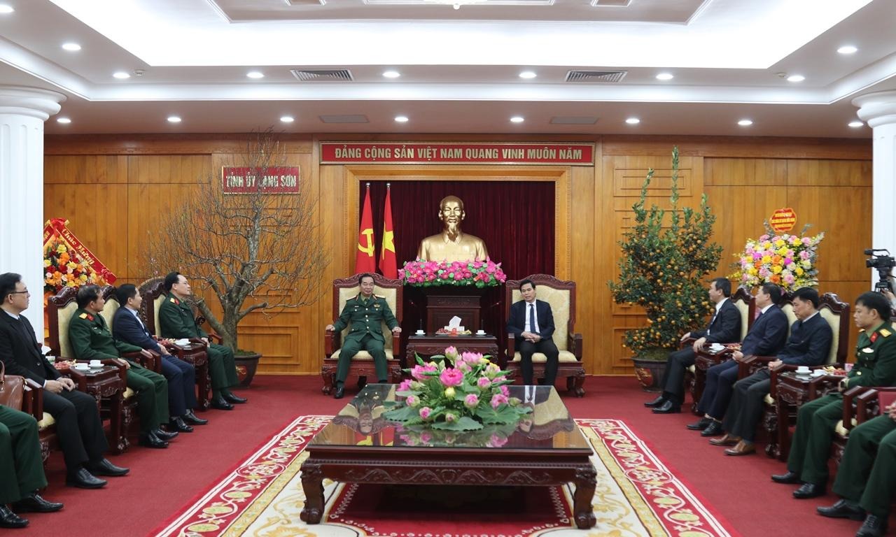 Đồng chí mong muốn thời gian tới tỉnh Lạng Sơn tiếp tục phát huy tinh thần đoàn kết, kết hợp chặt chẽ giữa phát triển kinh tế - xã hội với đảm bảo quốc phòng, an ninh, quan tâm xây dựng lực lượng vũ trang ngày càng vững mạnh, xây dựng biên giới hòa bình, hữu nghị, hợp tác và phát triển bền vững. Nhân dịp Tết Nguyên đán Bính Ngọ 2026, đồng chí chúc Đảng bộ, chính quyền, lực lượng vũ trang và Nhân dân tỉnh Lạng Sơn đón năm mới an khang, thịnh vượng.