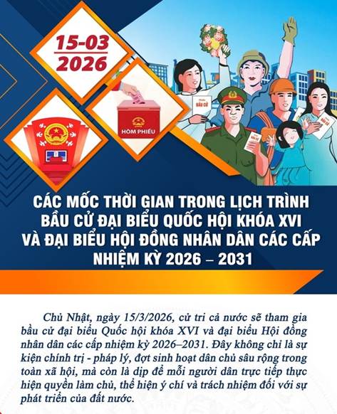 - Ngày 15/3/2026: Ngày bầu cử toàn quốc đại biểu Quốc hội khóa XVI và đại biểu HĐND các cấp nhiệm kỳ 2026-2031.