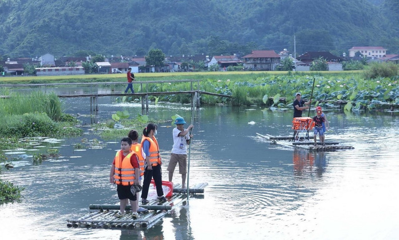 Du khách trải nghiệm đi bè tre