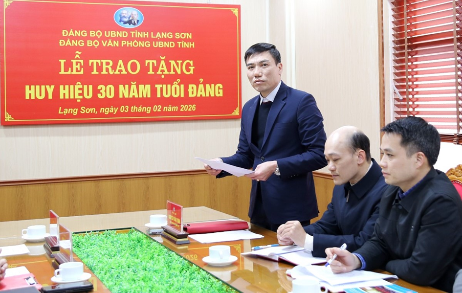 Đảng ủy Văn phòng UBND tỉnh tổ chức Lễ trao tặng Huy hiệu 30 năm tuổi Đảng