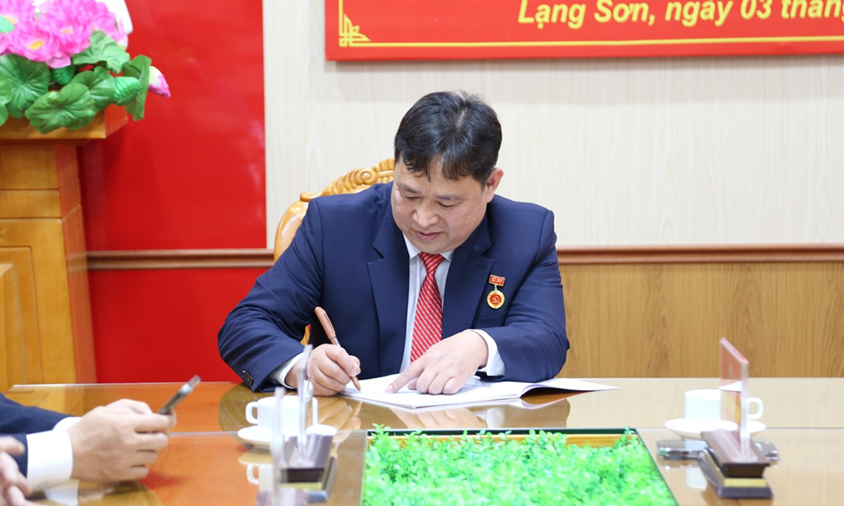 Đồng chí Đinh Văn Huấn, đảng viên Chi bộ Trung tâm Phục vụ hành chính công - Thông tin ký sổ tặng Huy hiệu Đảng của Đảng bộ Văn phòng UBND tỉnh