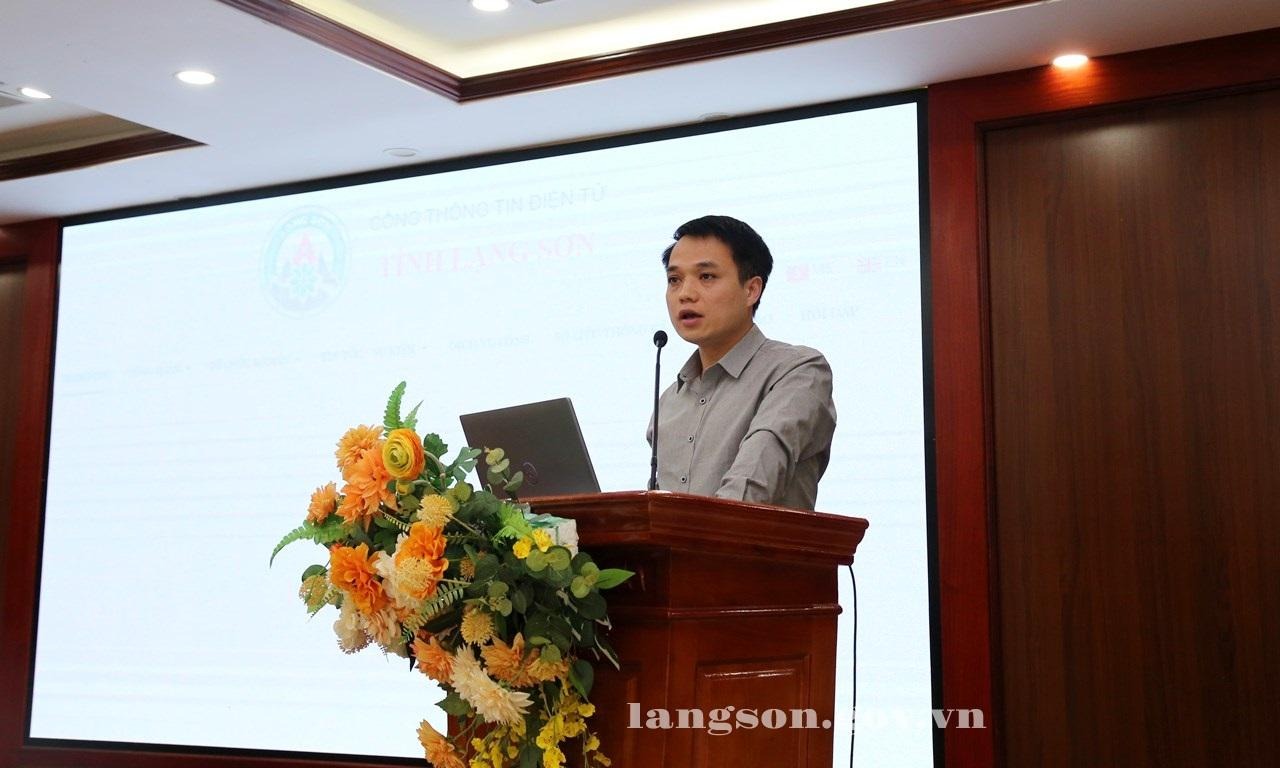 Báo cáo viên giới thiệu nội dung về quy định, văn bản pháp luật của Nhà nước về cung cấp thông tin trên môi trường mạng trên Cổng/Trang thông tin điện tử các cấp