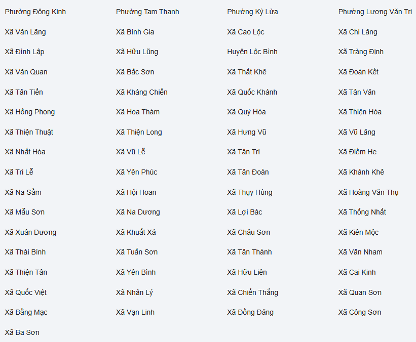 Tỉnh Lạng Sơn có 65 đơn vị hành chính cấp xã; gồm: