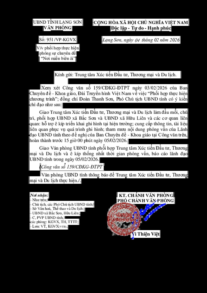 | Tiêu đề văn bản | Phối hợp thực hiện chương trình phóng sự chuyên đề "Nơi miền biên ải" của Ban Chuyên đề - Khoa giáo, Đài Truyền hình Việt Nam | ||