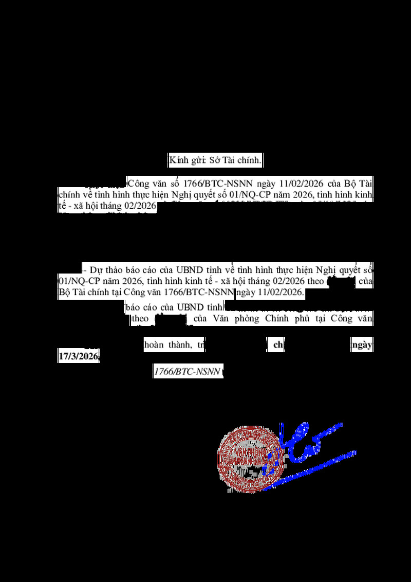 | Tiêu đề văn bản | V/v báo cáo tình hình thực hiện Nghị quyết số 01/NQ-CP năm 2026, kinh tế - xã hội tháng 02/2026 và báo cáo kiểm điểm công tác chỉ đạo, điều hành năm 2025 | ||
