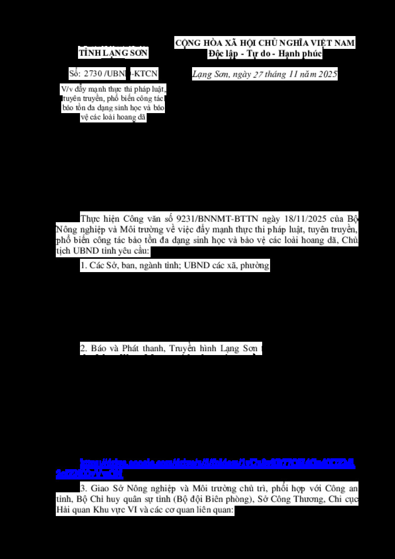 | Tiêu đề văn bản | V/v đẩy mạnh thực thi pháp luật, tuyên truyền, phổ biến công tác bảo tồn đa dạng sinh học và bảo vệ các loài hoang dã | ||