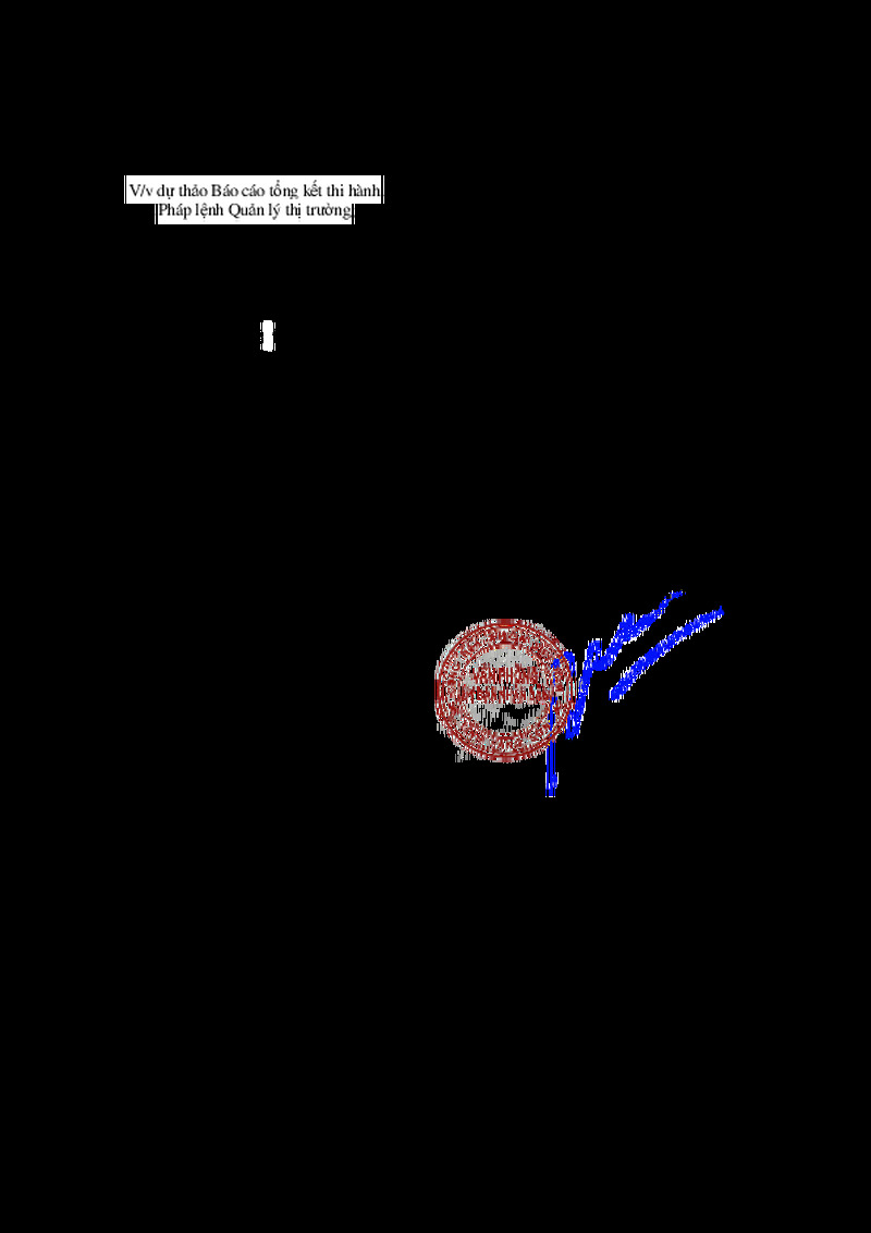 | Tiêu đề văn bản | V/v dự thảo Báo cáo tổng kết thi hành Pháp lệnh Quản lý thị trường | ||