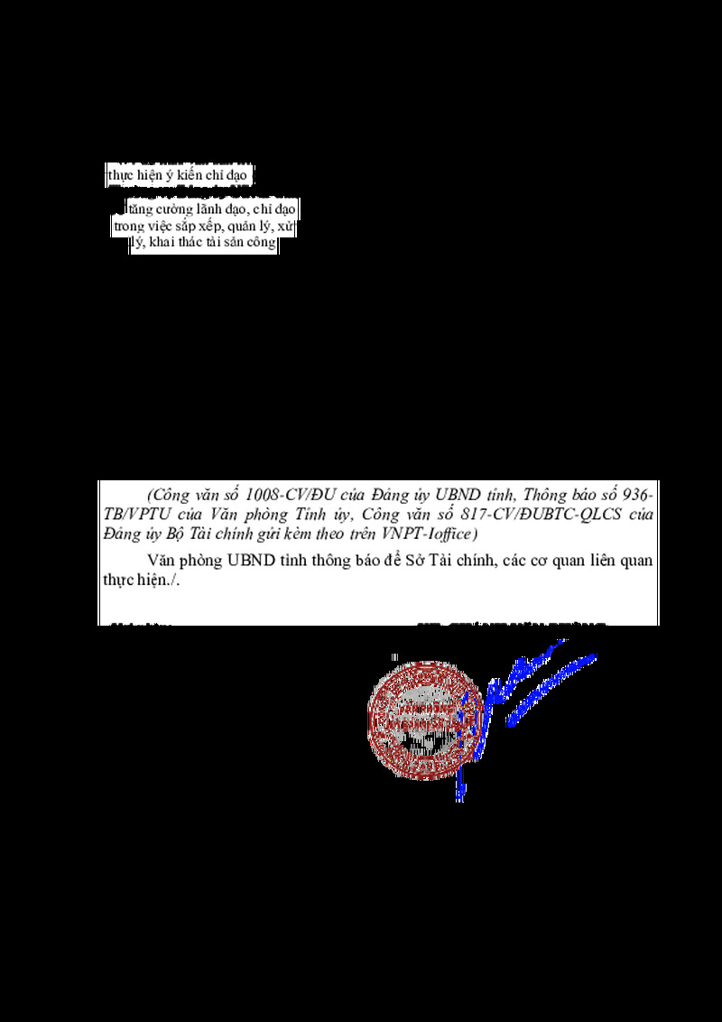 | Tiêu đề văn bản | V/v dự thảo văn bản triển khai thực hiện ý kiến chỉ đạo của Ban Thường vụ Đảng ủy UBND tỉnh về tăng cường lãnh đạo, chỉ đạo trong việc sắp xếp, quản lý, xử lý, khai thác tài sản công | ||