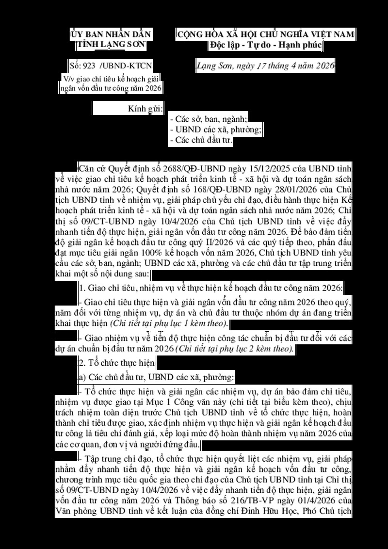 Chủ tịch UBND tỉnh đồng ý chủ trương điều chỉnh quy mô Dự án Nâng cấp, mở rộng tuyến chính đường nội bộ khu vực cửa khẩu Hữu Nghị đoạn từ Km1+106.19-Km1+838.85