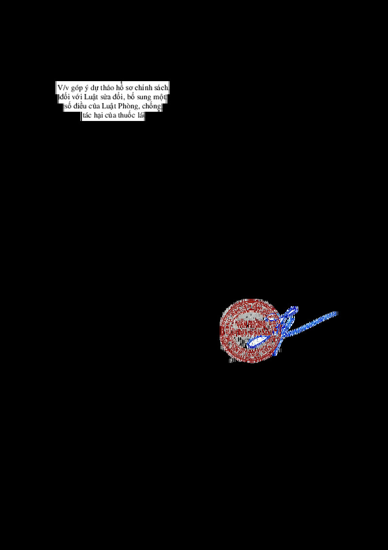 | Tiêu đề văn bản | V/v góp ý dự thảo hồ sơ chính sách đối với Luật sửa đổi, bổ sung một số điều của Luật Phòng, chống tác hại của thuốc lá | ||