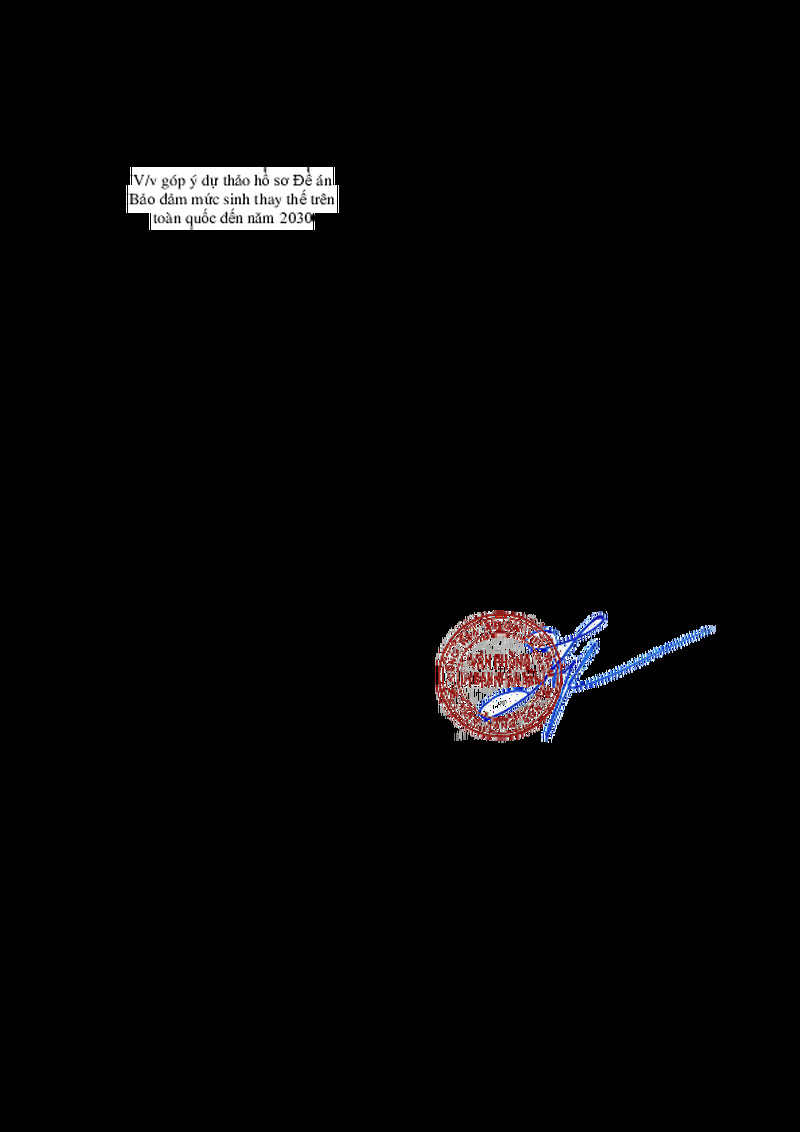 | Tiêu đề văn bản | V/v góp ý dự thảo hồ sơ Đề án Bảo đảm mức sinh thay thế trên toàn quốc đến năm 2030 | ||
