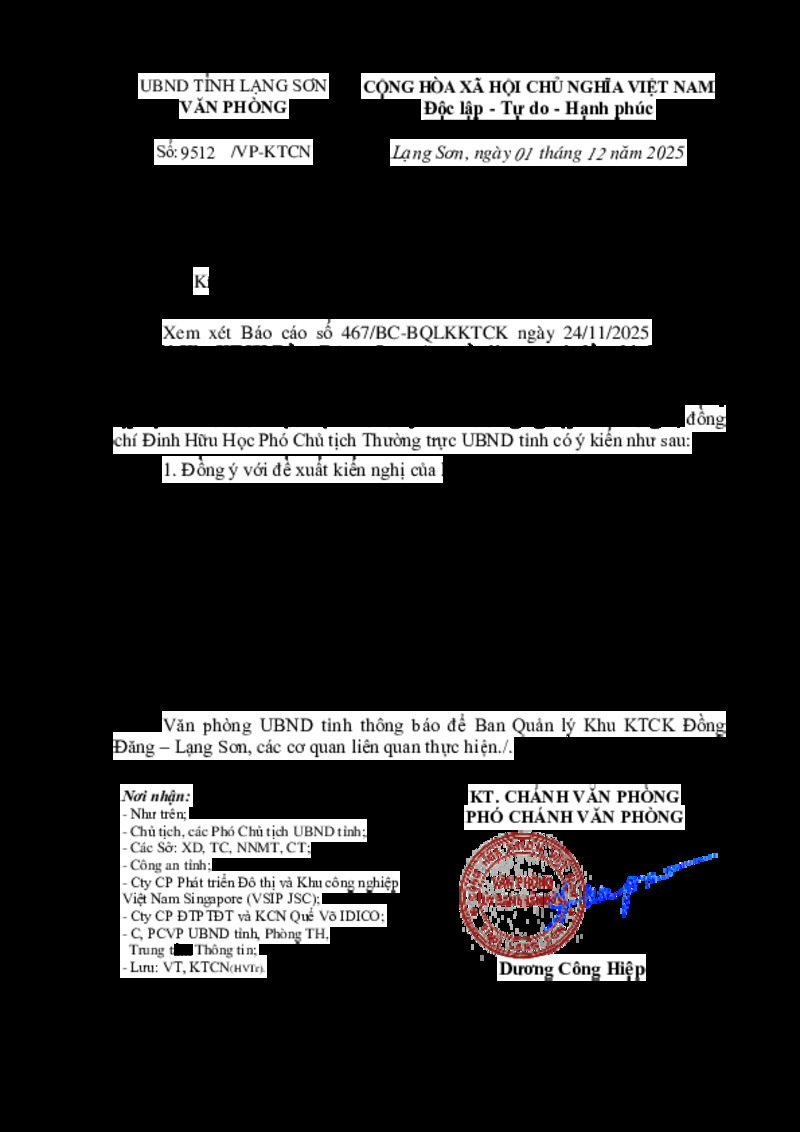 | Tiêu đề văn bản | V/v lập Quy hoạch phân khu và triển khai đề xuất lập dự án đầu tư các khu công nghiệp Hữu Lũng 3, 4 và khu công nghiệp Hữu Lũng 7 | ||