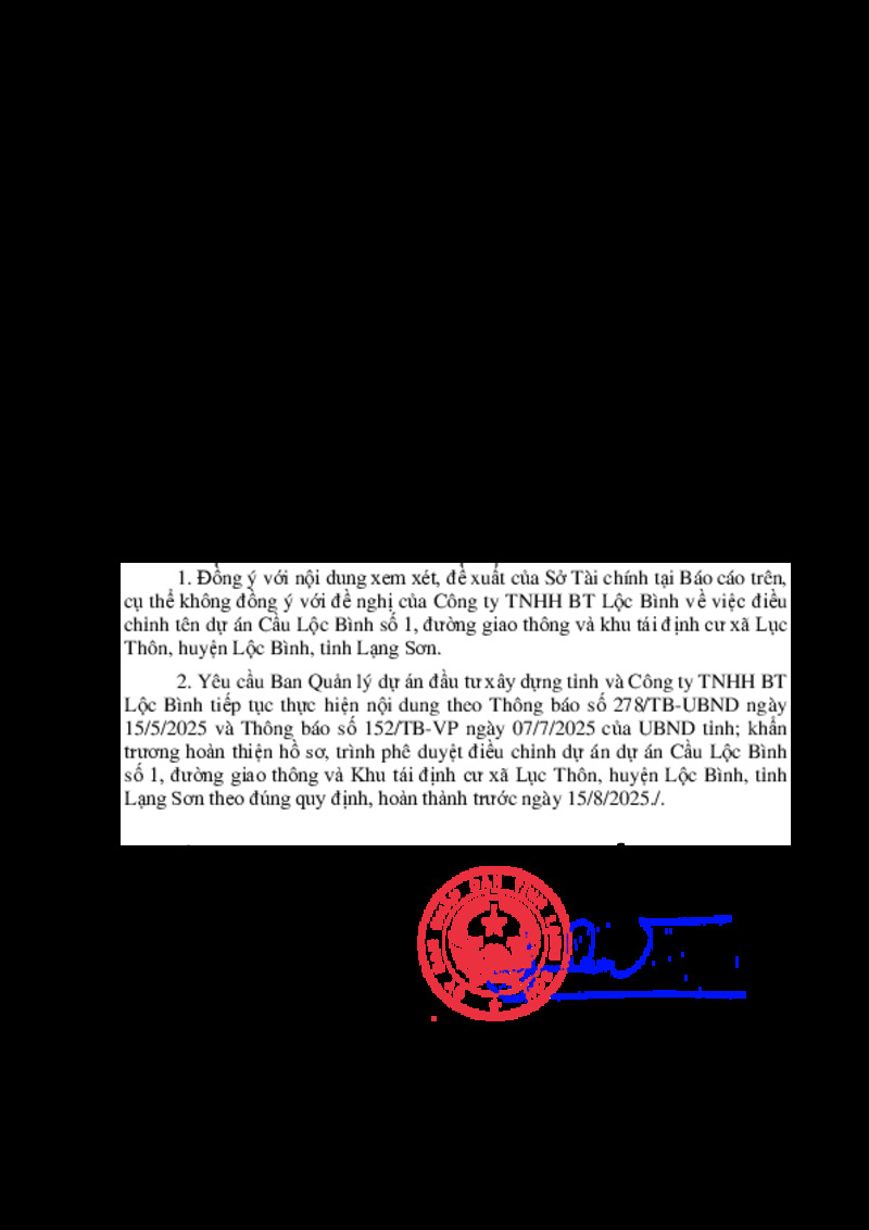 | Tiêu đề văn bản | V/v liên quan đến điều chỉnh tên dự án Cầu Lộc Bình số 1, đường giao thông và Khu tái định cư xã Lục Thôn, huyện Lộc Bình, tỉnh Lạng Sơn | ||