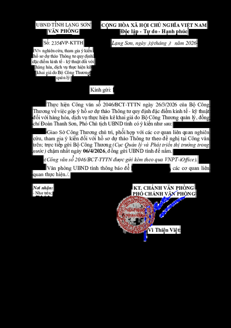 | Tiêu đề văn bản | V/v nghiên cứu, tham gia ý kiến hồ sơ dự thảo Thông tư quy định đặc điểm kinh tế - kỹ thuật đối với hàng hóa, dịch vụ thực hiện kê khai giá do Bộ Công Thương quản lý | ||