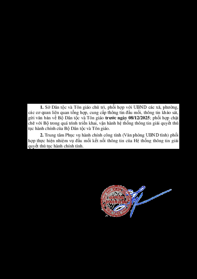 | Tiêu đề văn bản | V/v phối hợp khảo sát, cung cấp thông tin triển khai Hệ thống thông tin giải quyết thủ tục hành chính của Bộ Dân tộc và Tôn giáo | ||