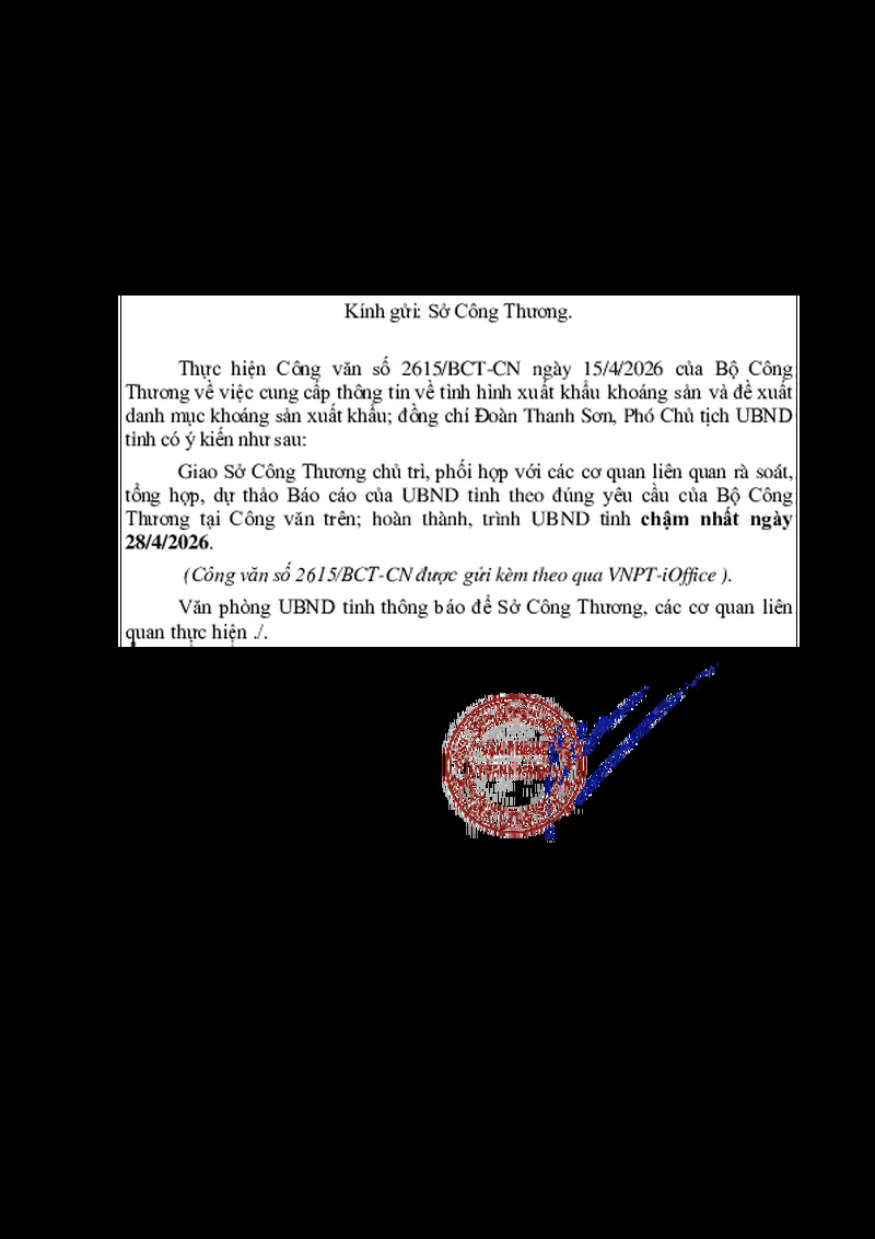 | Tiêu đề văn bản | V/v rà soát, tổng hợp, dự thảo báo cáo cung cấp thông tin về tình hình xuất khẩu khoáng sản và đề xuất danh mục khoáng sản xuất khẩu | ||