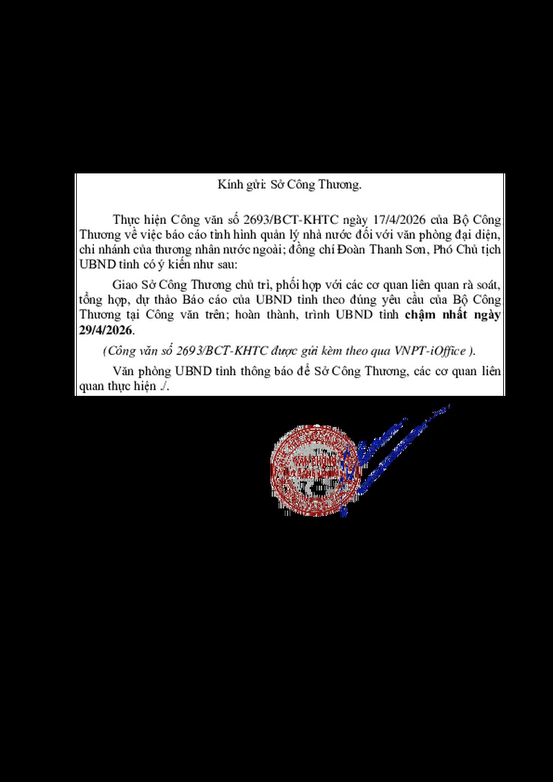 | Tiêu đề văn bản | V/v rà soát, tổng hợp, dự thảo báo cáo tình hình quản lý nhà nước đối với văn phòng đại diện, chi nhánh của thương nhân nước ngoài | ||